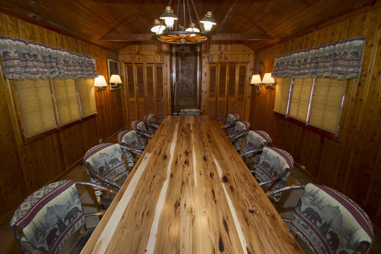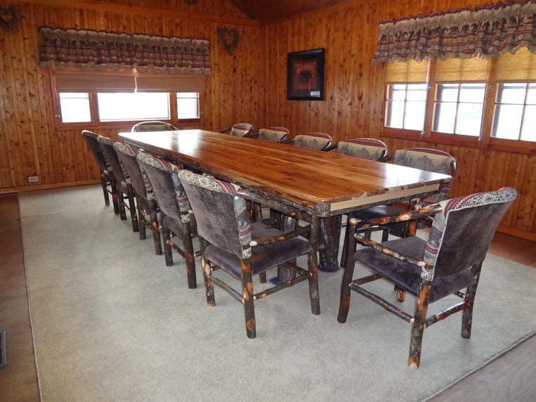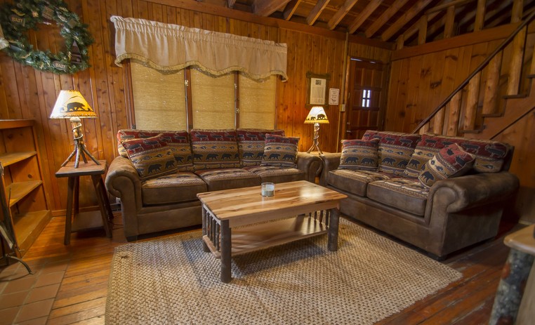 Cabin Seven is a quaint yet spacious cabin with a large conference room, perfect for corporate meetings. Set deep in our pine wood forest. Cabin Seven has a fully equipped kitchen with a stove, refrigerator and a wood burning fireplace. Cabin Seven has one bedroom with a full size bed, one bath, one bedroom with two twin beds and a loft with a twin bed. This cabin also has a fire pit, perfect for a campfire.